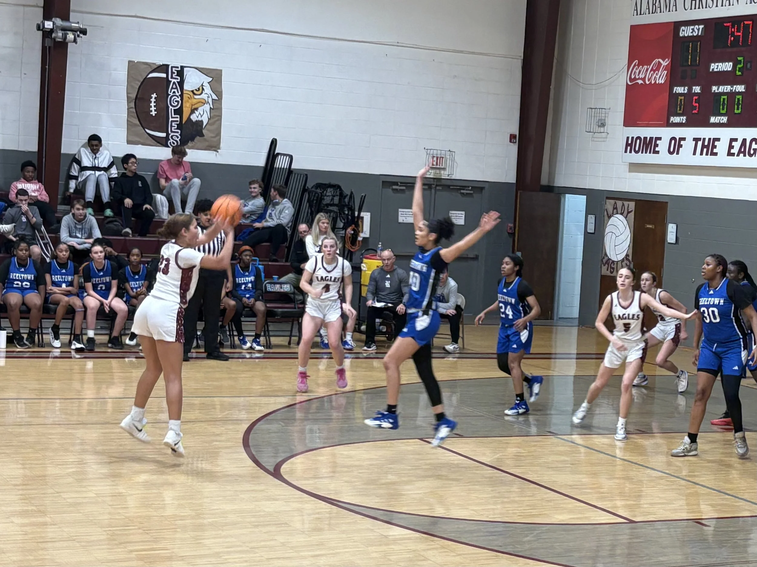 Sometimes in sports you run across a player who is just physically bigger than everyone else and can’t be stopped. ACA (5-5) lived that reality on Thursday as Reeltown had a mountain of a post player and a couple of other girls who were also bigger than any Eagle. The coaching staff tried multiple defenses to stop her, but some of the other players hit open shots in response to doubling the post. Overall, the Eagle effort was good and the team played hard all night. Despite trailing most of the second half, ACA cut the lead to two points with less than a minute to go, but Reeltown made their shots to win it, 52-46.